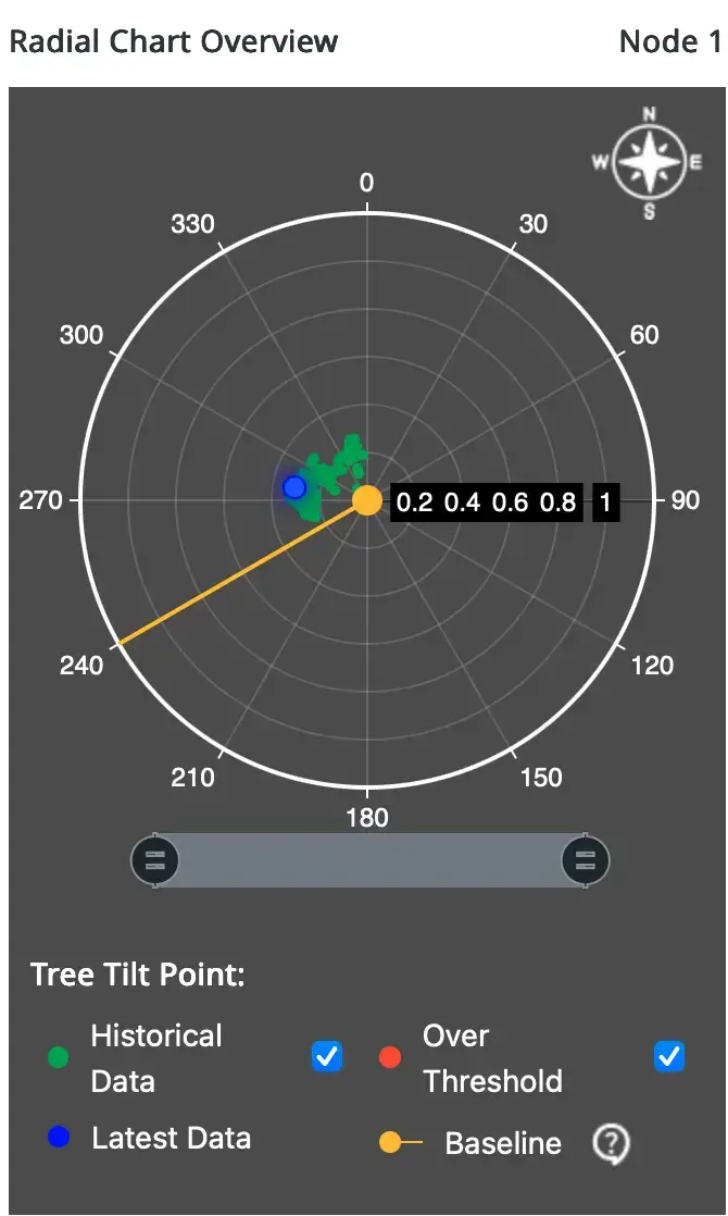 各個体にセンサーを装着し、揺動・傾斜の経時変化を常時モニタリングすることで、構造的安定性の評価やリスク兆候の把握を可能にします。