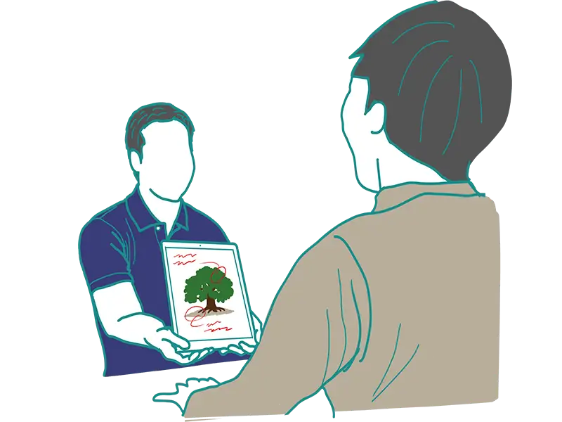 樹木医のスタッフが実現したい空間のイメージやご予算・納期をヒアリングし、数パターンの提案書を作成。